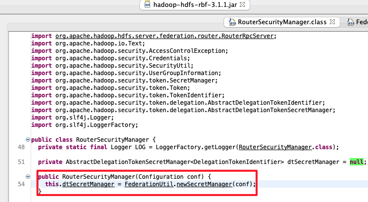 3.1.1 版本代码里并没有 RouterSecurityManager,于是拉到集群里的 jar 包反编译,发现,FI 实现的 RouterSecurityManager 没有任何的校验: